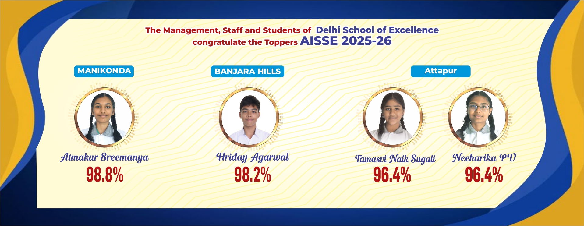 Delhi School of Excellence is one of the Top CBSE School in Hyderabad. DSE established in 2012. It is affiliated to the Central Board of Secondary Education, New Delhi. Presently there are three branches across the city at Attapur, Banjara Hills and Manikonda.